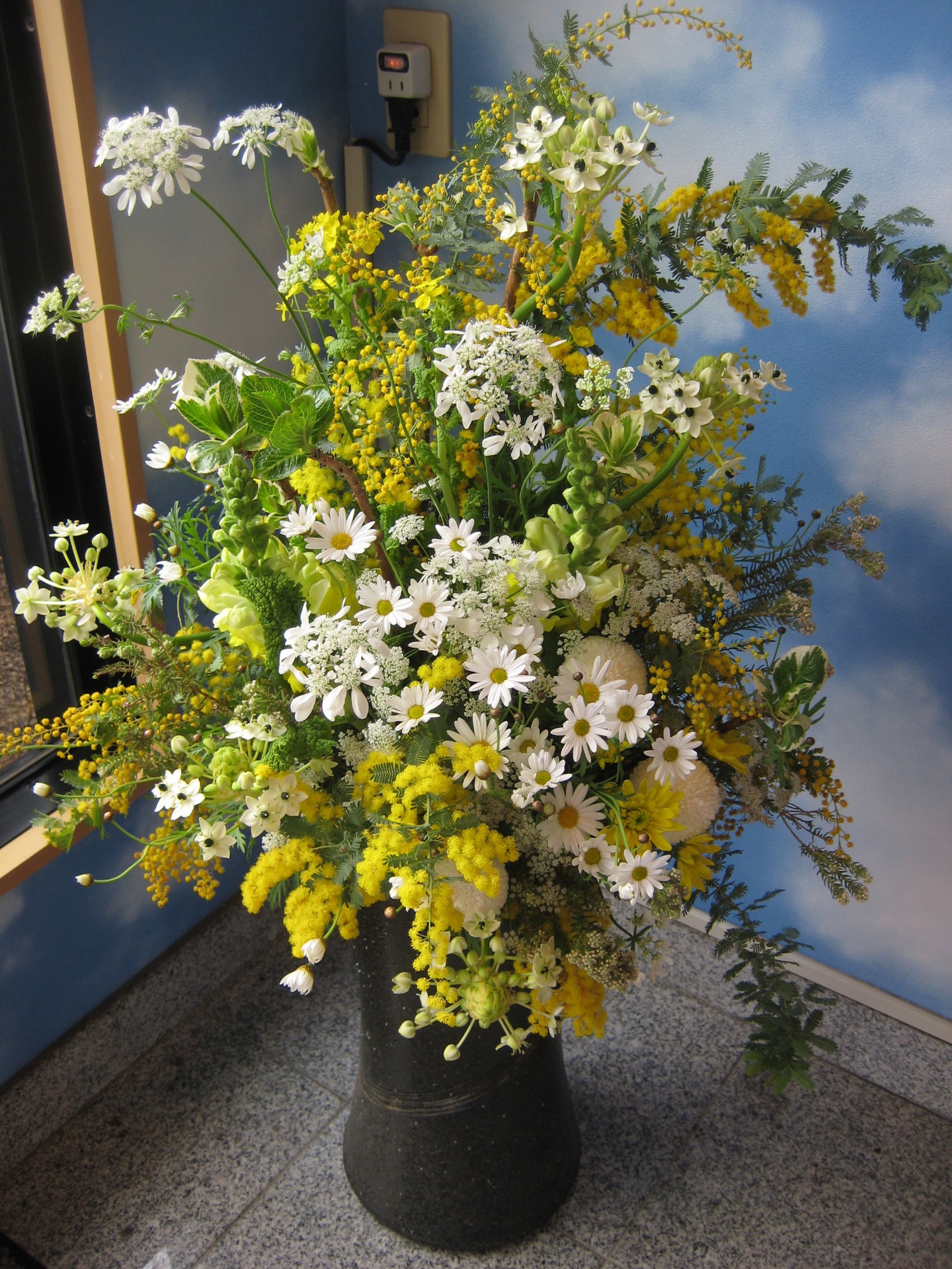 今週は、ミモザをメインに作っていただきました♪毎週、花童様に素敵なお花をお願いしています。四季折々のお花を飾って、待合室でも季節を感じられるようにしています。(*'ω'*)