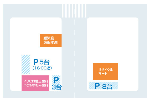H29.11.1より魚鮮水産の駐車場も停められるようになりました!左奥5台分を、16時までご利用可能です。