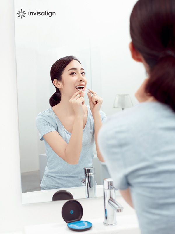ご自身でマウスピースを自由に取り外していただけますので、お食事もこれまで通り、歯磨きもきちんとできて清潔なお口を保てます。食事や歯磨きの時間以外は常にマウスピースをはめていただき、1日に20時間以上は装着することになりますが、スポーツや大切なお仕事がある場合は、マウスピースを外していただくことが可能です。 |