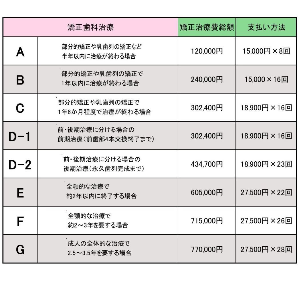 | 検査等 | 矯正検査・診断・分析・コンサルテーション 39,600円(税込) |